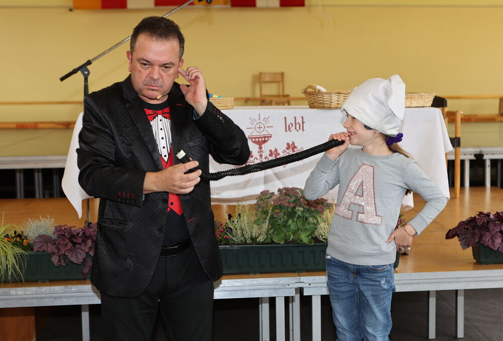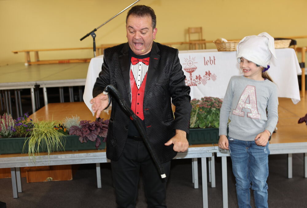 In der Kulturhalle der Volksschule Himmelberg wurde der Zubau des neu gestalteten Kindergartens vom Pfarrer Jacek Artur Wesoly spielerisch, elegant eingeweiht. Im Zuge dessen konnte man den neuen Kindergarten, in dem 65 Kinder zurzeit betreut werden, besichtigen. Für die Kleinsten gab es eine Menge Zaubertricks zu bewundern. Kulinarisch versorgten die Aussteller vom Bauernmarkt die Besucher.