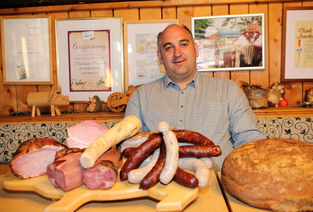 Hanebauer Josef Kraßnig bot seine mehrfach ausgezeichneten bäuerlichen Produkte direkt am Hof bei einem kleinen Ostermarkt an.