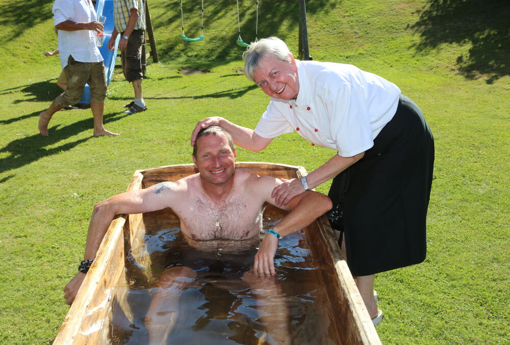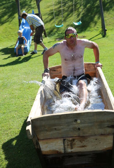 Zum Glück wurden die 140 Teilnehmer:innen beim Reid´nwirt von den tollen Gastgebern Irmgard und Karl Liebetegger mit kühlen Getränken, erfrischenden Duschen und sogar Badetrögen zur Abkühlung empfangen. Für ausgelassene Stimmung sorgte DJ Mike.