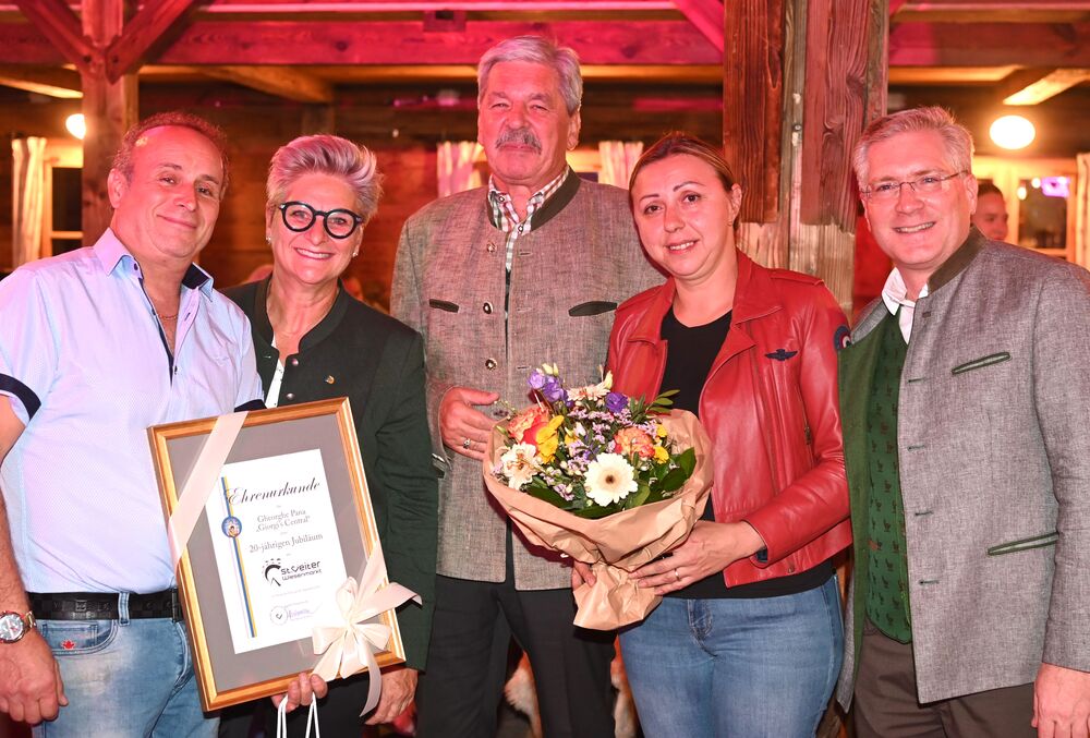 Zum traditionellen Schaustellerempfang mit den Ehrungen zum 661. St. Veiter Wiesenmarkt lud Bürgermeister Martin Kulmer und Marktreferentin Silvia Radaelli im Beisein von Gemeinderäten und Herwig Kampl (Zuständiger von der Bezirksverwaltungsbehörde) in Taupes Genusswiesn. Geehrt wurden für langjähriges Mitwirken Dzini und Gheorghe Pana von "Giorgi´s Central", Patrizia Fregonese und Michele Pasian von der Osteria San Vito, Maronibrater Franz Zechner und Parmjit Singh von "Pamma´s Pizzeria". Elfriede Kokesch, die schon seit 40 Jahren mit ihren bunten Ballons die Besucher erfreut, wird erst auf der Wiesen geehrt. Besonderen Dank sprach Bgm. Kulmer Harald Petersmann vom Bauamt mit seinem Team und der Marktreferentin aus, die für den Wiesenmarkt besonders wertvolle Arbeit leisten.