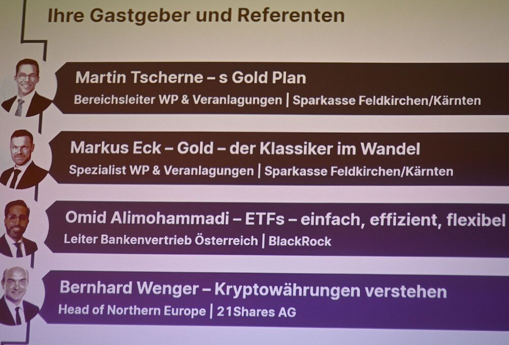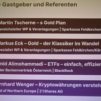 Gold ETFs & Krypto standen im Mittelpunkt einer Veranstaltung, - die Sparkasse Feldkirche verband Tradition und Moderne in der Geldanlage