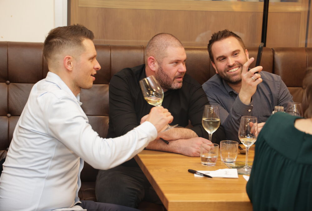 Verkostet haben Weinritter Charly Mörtl, Charly Platzer, Almir Slamnik und Arno Andrejcic von der Messe, Kärntens Sommelier-Präsident Klaus Gürtler, die Weinsommeliers Ingrid Bachler und Gerald Glinik, die Weinbauern Michi Hudelist, Walter Unterweger und Georg Lexer, Generalkonsul Anton Novak, StR Max Habenicht, Steinschafzüchterin Claudia Sackl, STW-Vorstand Erwin Smolle, Versicherer Hannes Kuschnig, LT-Abg. Harald Trettenbrein.