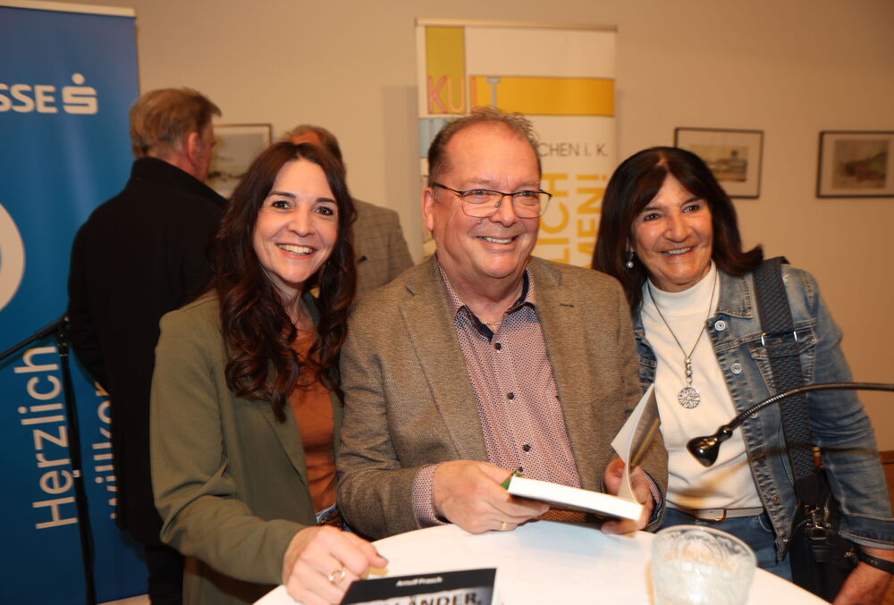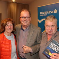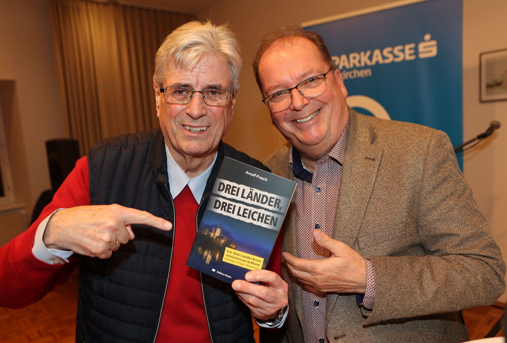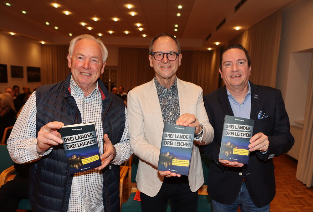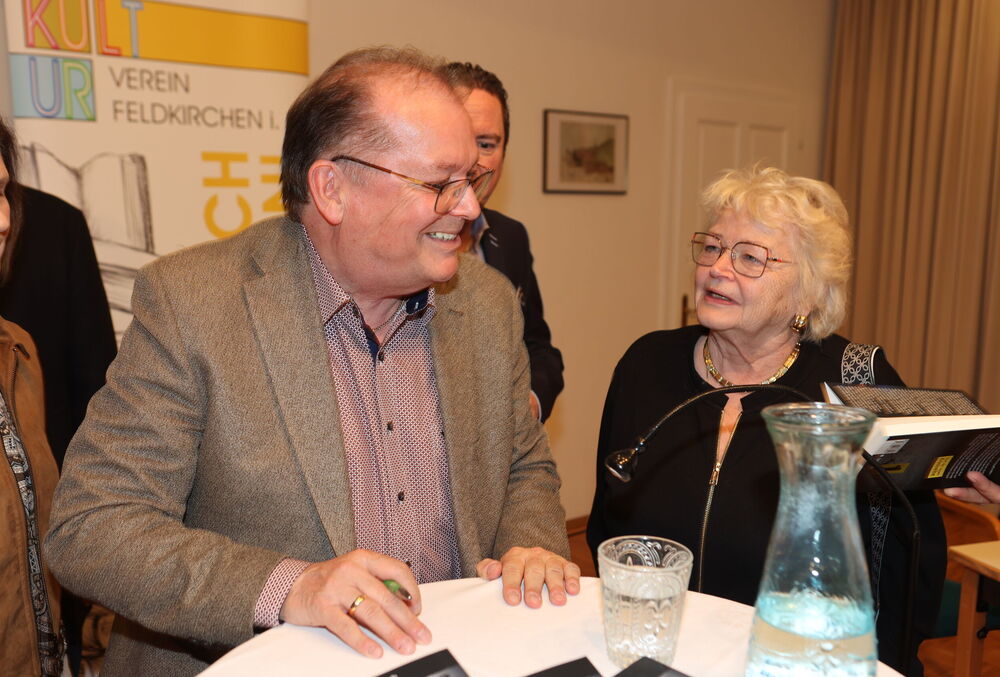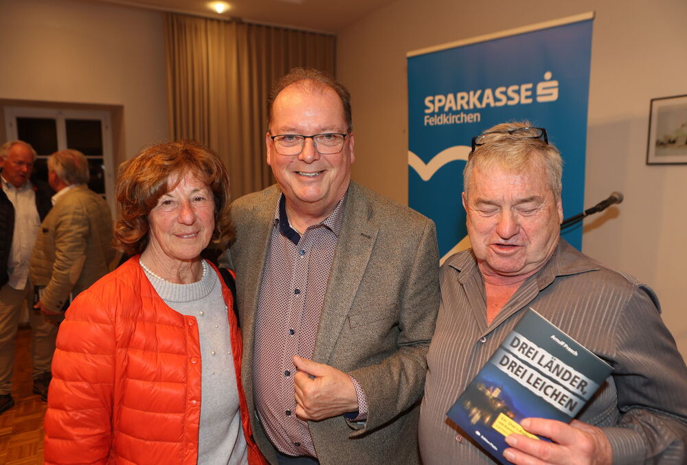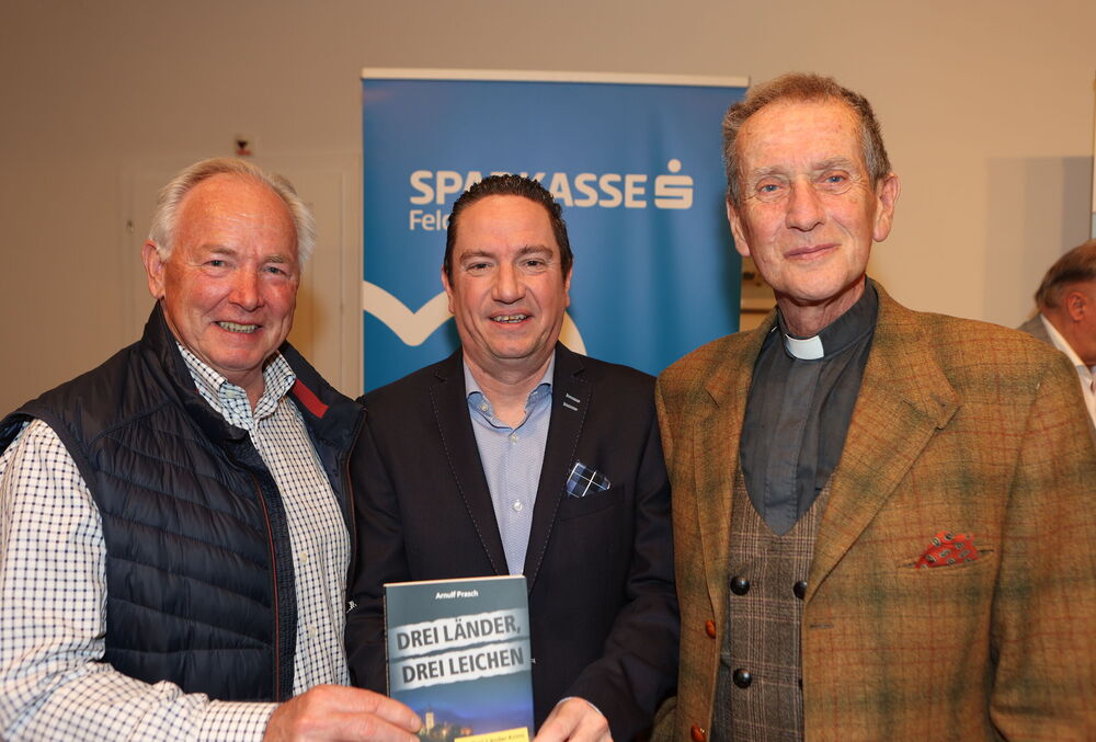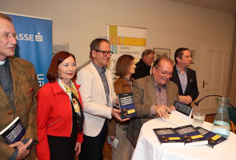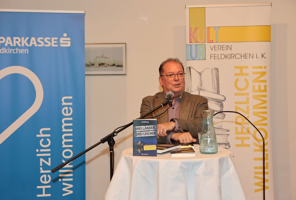 Die Lesung von Arnulf Prasch zu seinem neuen Buch „Drei Länder, drei Leichen“ bot den Besucherinnen und Besuchern einen spannenden und zugleich unterhaltsamen Abend. Der Autor verstand es, mit seiner lebendigen Vortragsweise das Publikum von Beginn an zu fesseln und in die vielschichtige Handlung seines Werkes hineinzuziehen. Full house bei der Buchpräsentationen von Neo-Krimiautor Arnulf Prasch. Aufgrund des großen Erfolges ist bereits der zweite Krimi von Arnulf Prasch in Arbeit und wird im November 2026 im Amthof Feldkirchen präsentiert Den Ausführungen von Neo-Krimiautor Arnulf Prasch lauschten: Alt-Landeshauptmann Gerhard Dörfler, Bürgermeister Martin Treffner mit Gattin Ingrid, Vorstandsmitglied Otto Markus Hoffmann der auch die Schienen zur Buchpräsentation legte GR Anton Dabernig alias Plotschn-Toni, SPK-Marketingchef Gerhard Schreilechner, Dechant Erich Aichholzer, das Wirteehepaar Claudia und Seppi Spieß vom Maltschacher See, sowie Christl Weissmann und Renate Dielacher.