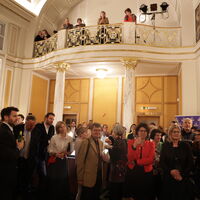 Einen vergnüglichen Abend bei den beiden letzten Possen von Johann Nestroy unterhielten sich köstlich die Hirterianer Niki Riegler, Klaus Möller und Heimo Schader, Edelbrenner Valentin "Pfau" Latschen, Weinkenner Günther Jordan, die Gastronomen Wolfgang Sicher, Iris Stromberger, Klaus Spitzbart, Karl & Irmgard Liebetegger, die "Plaktierer" David Edlinger und Claudia Ebner, Giebelkreuzlady Kerstin Rauter, die Werber Katrin & Lukas Schwarzkogler, Gregor Hager, Steuerberater Walter Zenkl.